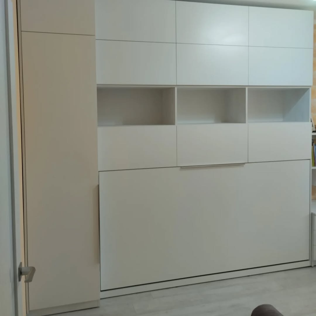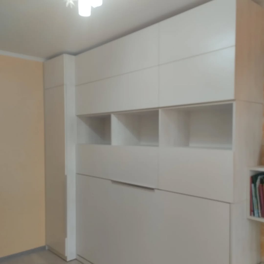 Кровать аккуратно прячется в нишу и разложить её сможет даже маленький ребёнок за счет качественных механизмов и фурнитуры.