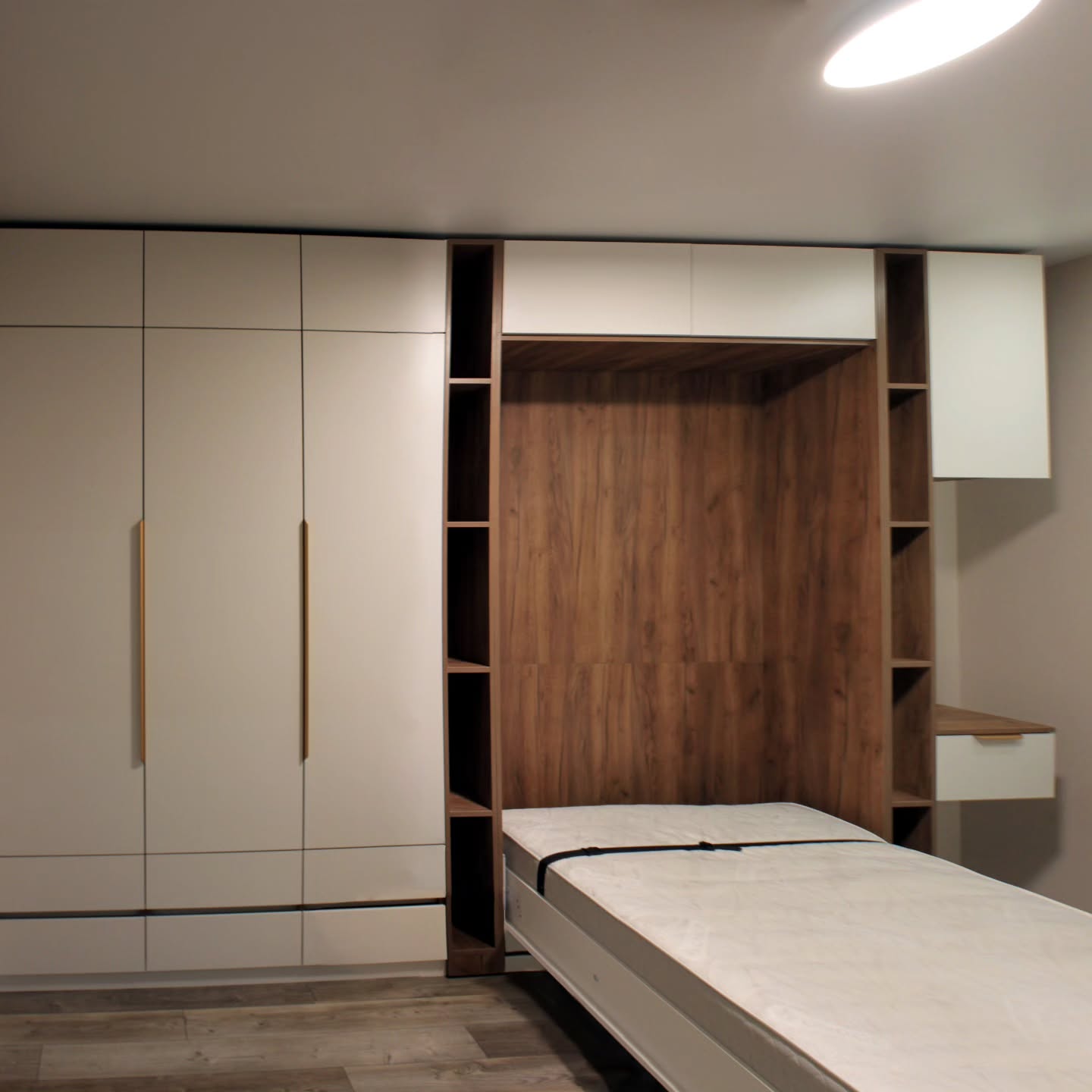 Кто сказал, что маленькая спальня не может быть уютной и функциональной? 💫 Наша кровать-трансформер с зоной хранения одежды, туалетным столиком и декоративными стелажами — идеальное решение для тех, кто ценит удобство и стиль! 🛏️✨ Позвольте превратить вашу спальню в уютное место, где есть место для всего!