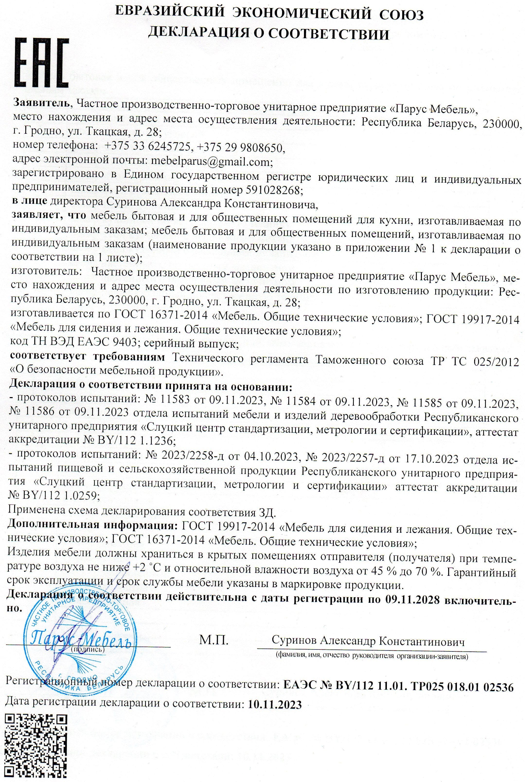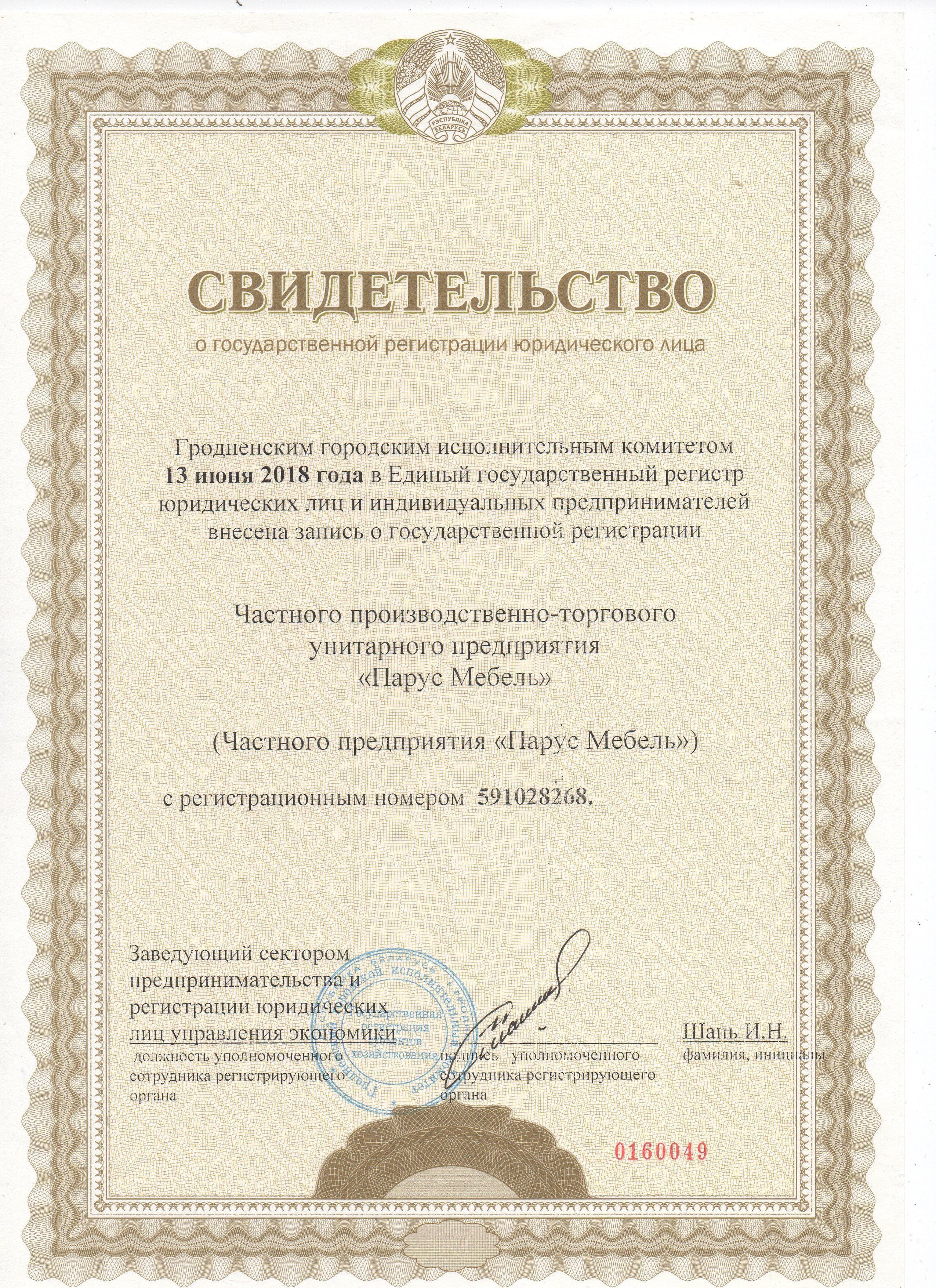 Частное производственно-торговое унитарное предприятие «Парус Мебель».